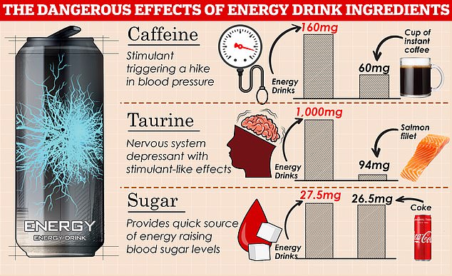 Combined, he had been consuming around 1300mg of caffeine - more than three times the recommended maximum intake of 400mg.